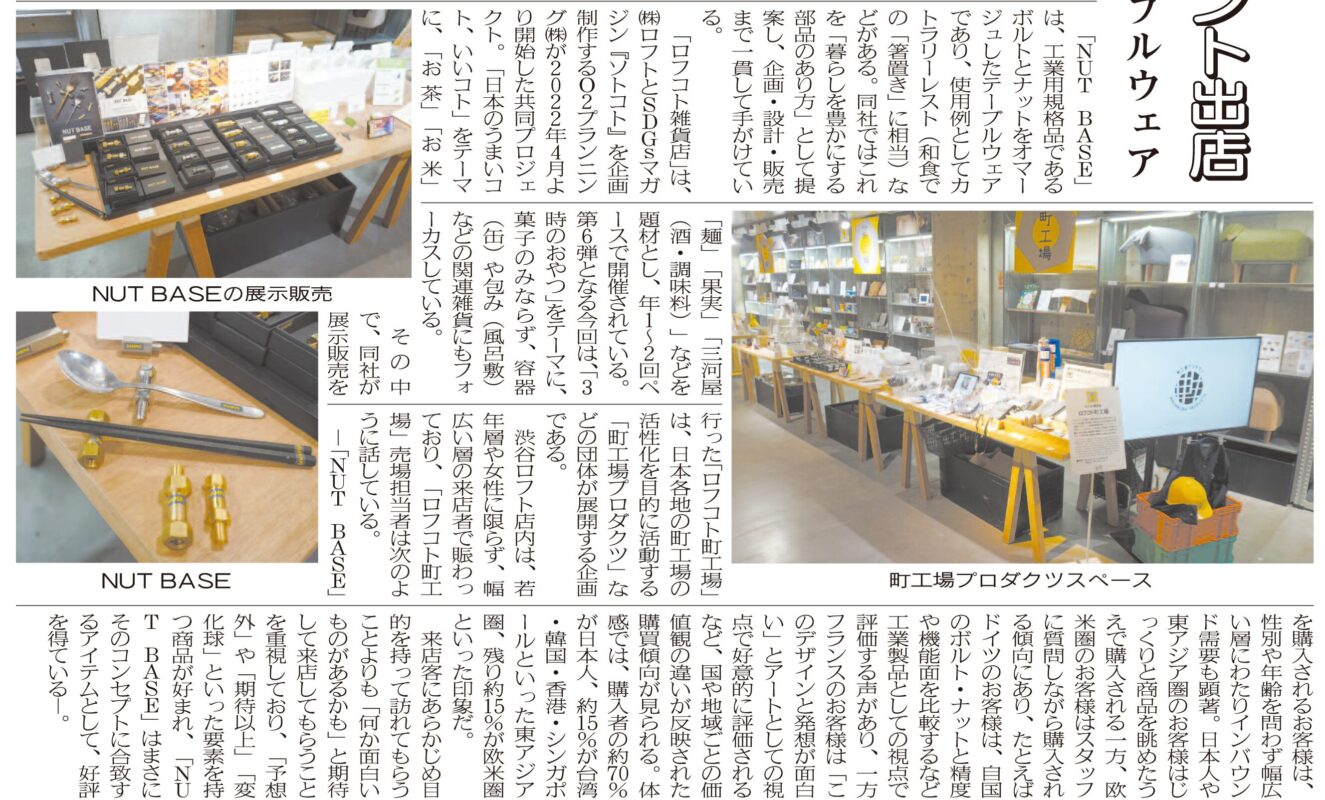 P.14には渋谷ロフト4階の特設会場で開催中の「ロフコト町工場」の情報が掲載。ありがたいことに町工場プロダクツを代表してNUT BASE/小林鋲螺にフォーカスしていただいて記事になっています。